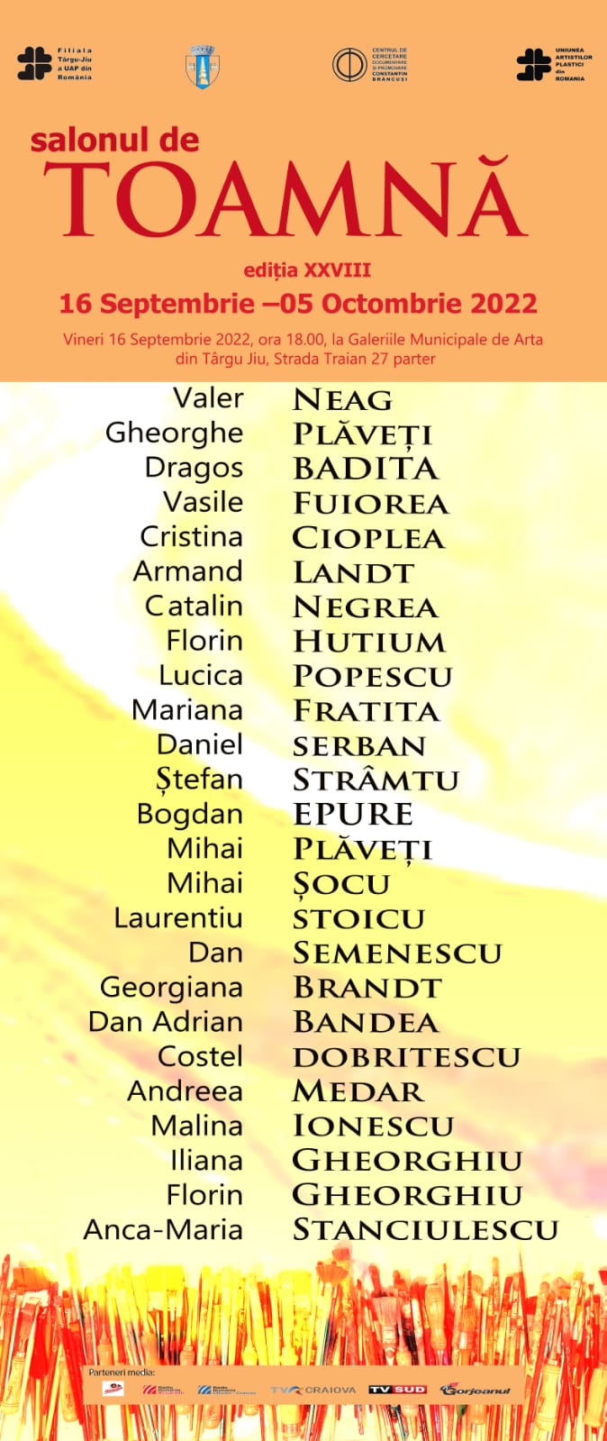 Centrul de Cercetare, Documentare şi Promovare „Constantin Brâncuşi”, Consiliul Local şi Primăria Municipiului Târgu Jiu, în parteneriat cu Uniunea Artiștilor Plastici din România și Filiala Târgu Jiu a U.A.P. din România organizează a XXVIII-a ediție a Salonului de Toamnă.